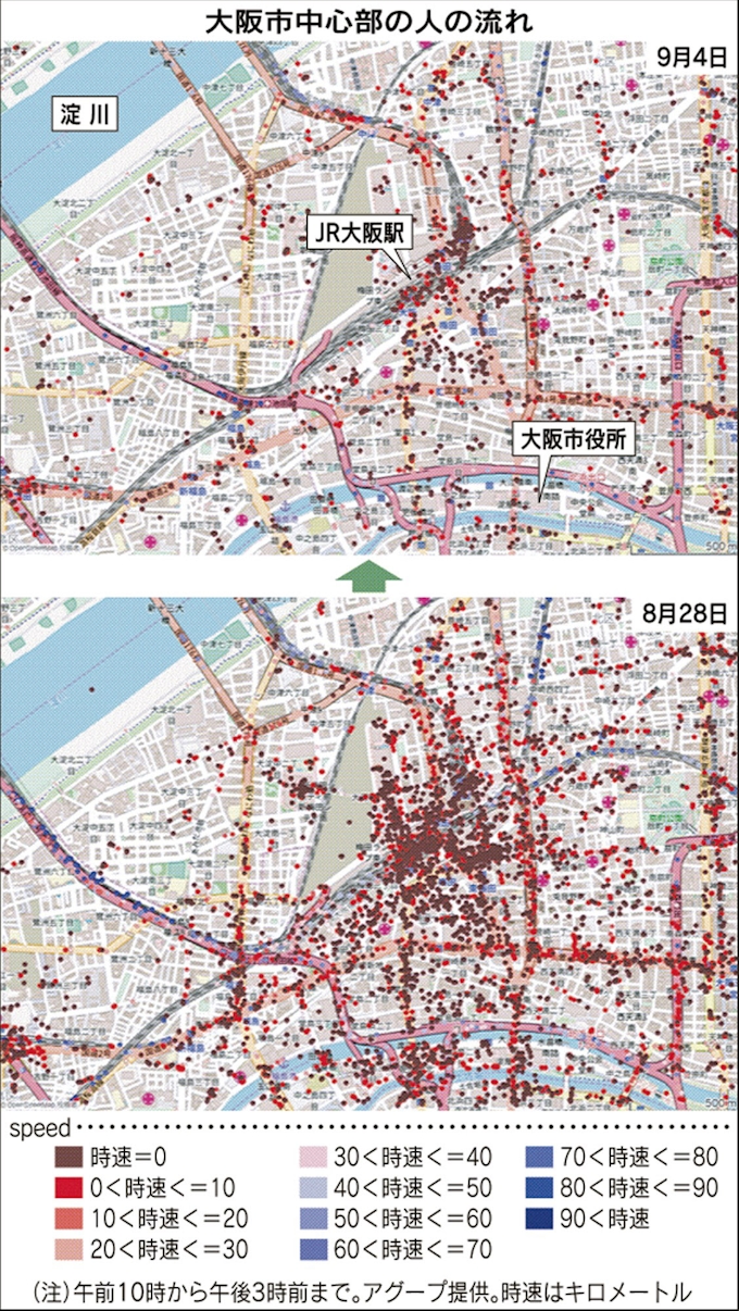 台風21号直撃時 大阪都心の昼間人口6割減 日本経済新聞