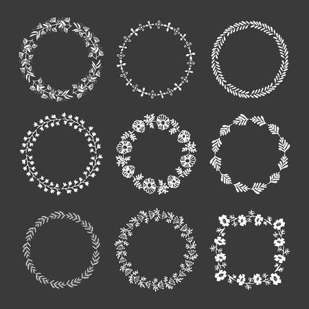 手描きベクトル イラスト 月桂冠と花輪 招待状やグリーティング カード 引用符 ブログ ポスターなどの要素をデザインします 結婚式フレームに最適です のイラスト素材 ベクタ Image