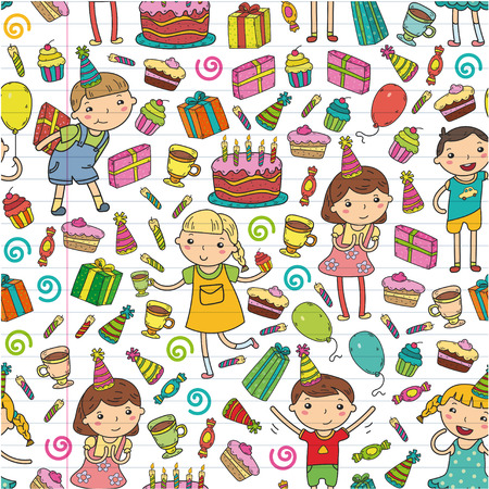 誕生日おめでとうベクトルデザイン 誕生日の帽子パーティーとお祝い 幼稚園児 学校の子供のパーティー のイラスト素材 ベクタ Image