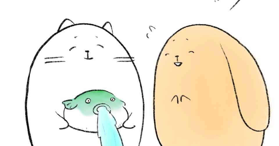 水を吐くフグの絵 栗熊ひろよ Note