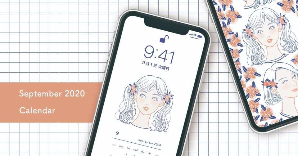 ロック画面や待ち受け スマホ壁紙に使える 19年9月のカレンダーイラスト Momochyのおうち イラストレーターももちーのwebサイト 花 イラスト イラスト カレンダー イラスト